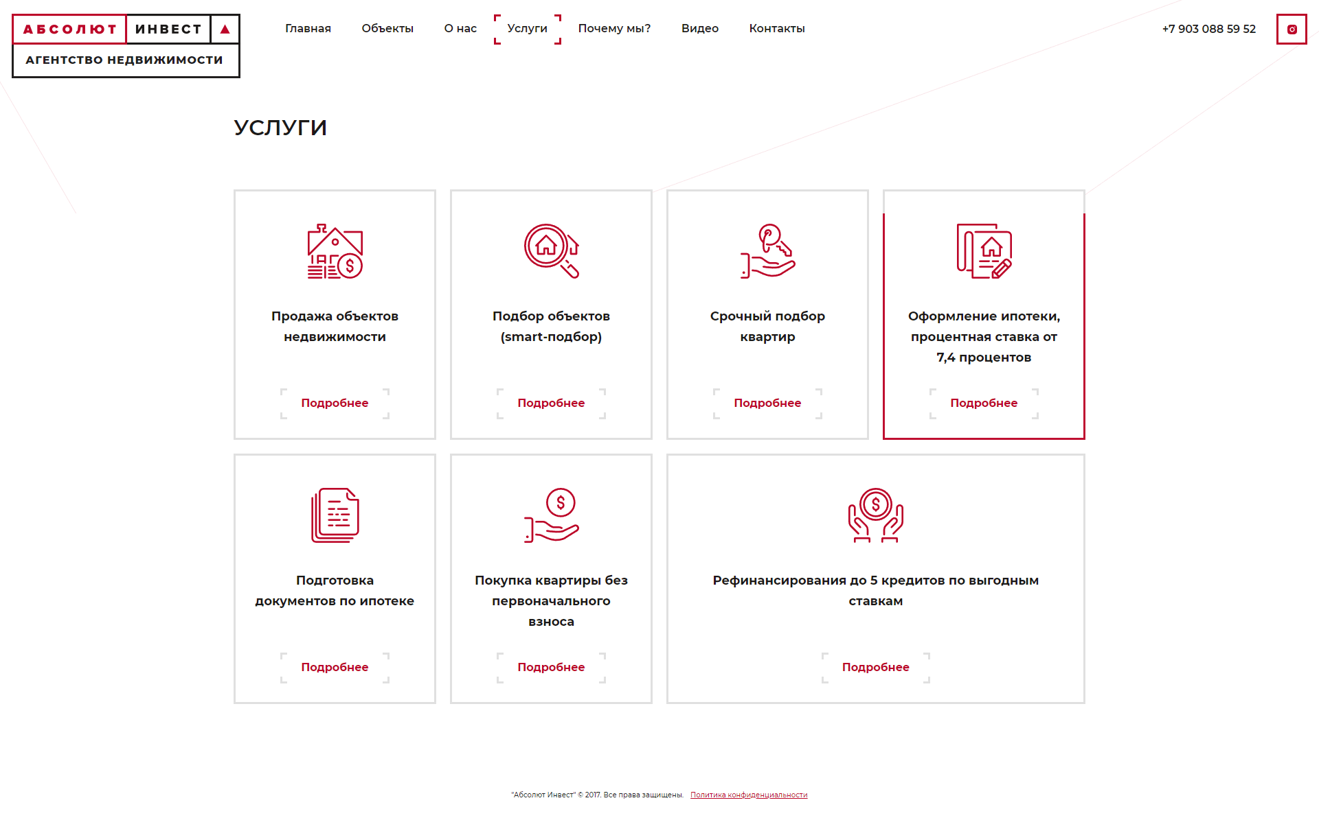 Компания предоставляет большой спектр услуг, мы представили каждую в простом виде со встроенной формой обратной связи чтобы посетитель сайта мог обратиться без проблем к необходимому специалисту.